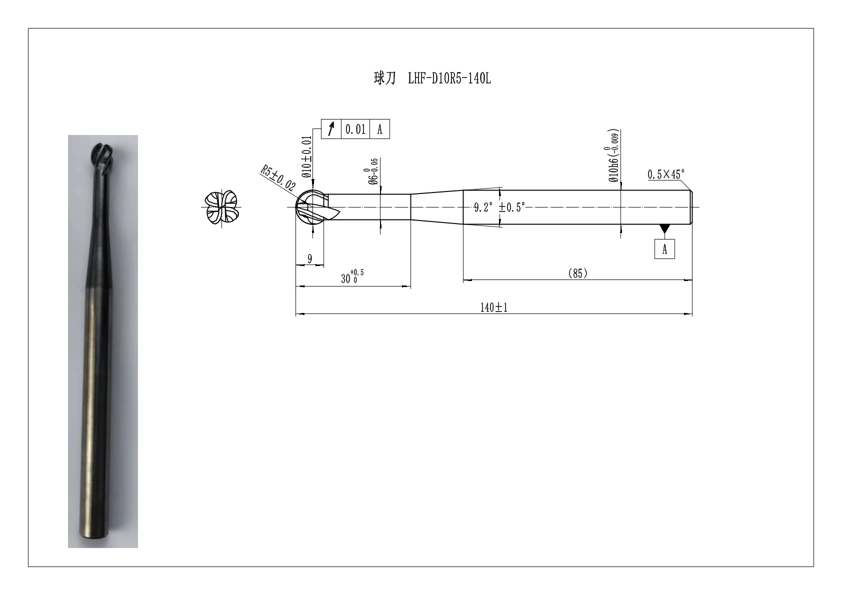 The Ball Nose End Mill-D10R5-140L is designed for 3D milling applications, offering smooth surface finishes with a 5mm radius and exceptional cutting precision.